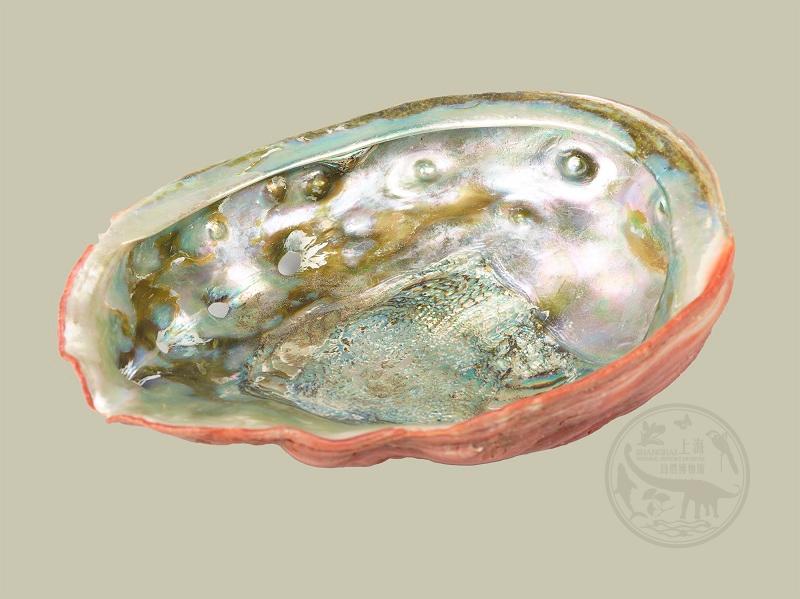 贝壳直径可达28 cm以上,壳内面光洁呈彩虹色。肌痕大而明显,具绿色光泽,壳外缘向内延伸,至珍珠层边缘处形成一条狭窄的红边。呼吸孔卵圆形呈管状略向外突起。一般有3~4个开孔。软体部和上足光滑,上足边缘呈扇形。具黑色触手略向壳外缘延伸。红鲍喜栖息于岩礁海底