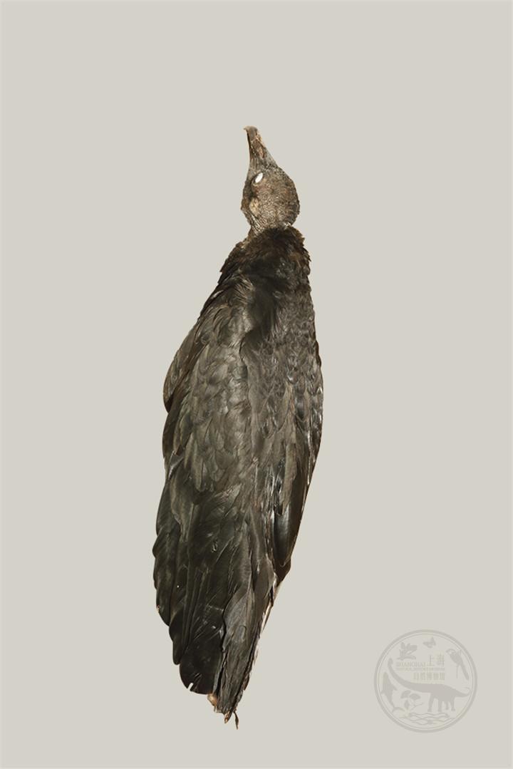 体长约65 cm,双翼展开可达1.5 m,重约为2 kg。全身主要覆盖有光泽的黑色羽毛,而头部和颈部没有羽毛,皮肤是带皱的深灰色。虹膜棕色,在上眼睑有一排不完整的眼睫毛,下眼睑有两排。腿呈灰白色,脚上有两个前脚趾比较长,并且之间有蹼。